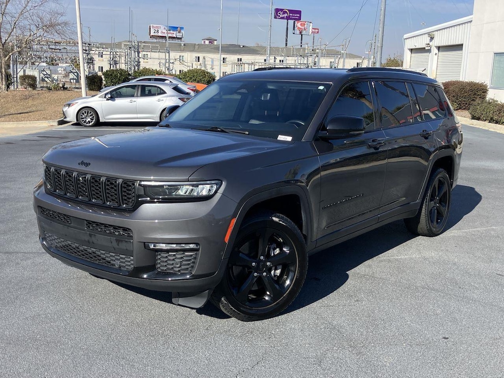 The Grand Cherokee L is very similar to the regular Grand Cherokee with added room for a third row without feeling crowded.The exterior color is called Baltic Gray Metallic Clearcoat. This dark gray hue shows normal wear and use, while being free from damage caused by accidents or other incidents.