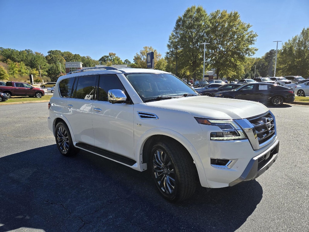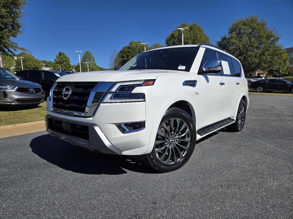 This 2022 Nissan Armada Platinum, has a Aspen White TriCoat Pearl exterior and an Almond interior color. 51,120 miles. Stock Number 10936A. You can connect