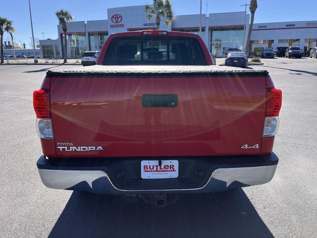 This Tundra is powered by a 5.7L V8 engine and a 6-speed automatic transmission. It has up to 381 HP and a maximum towing capacity of 10,300 lbs. when it is properly equipped.The exterior color is called Radiant Red. It does show normal wear, yet the body is free from damage and dents.